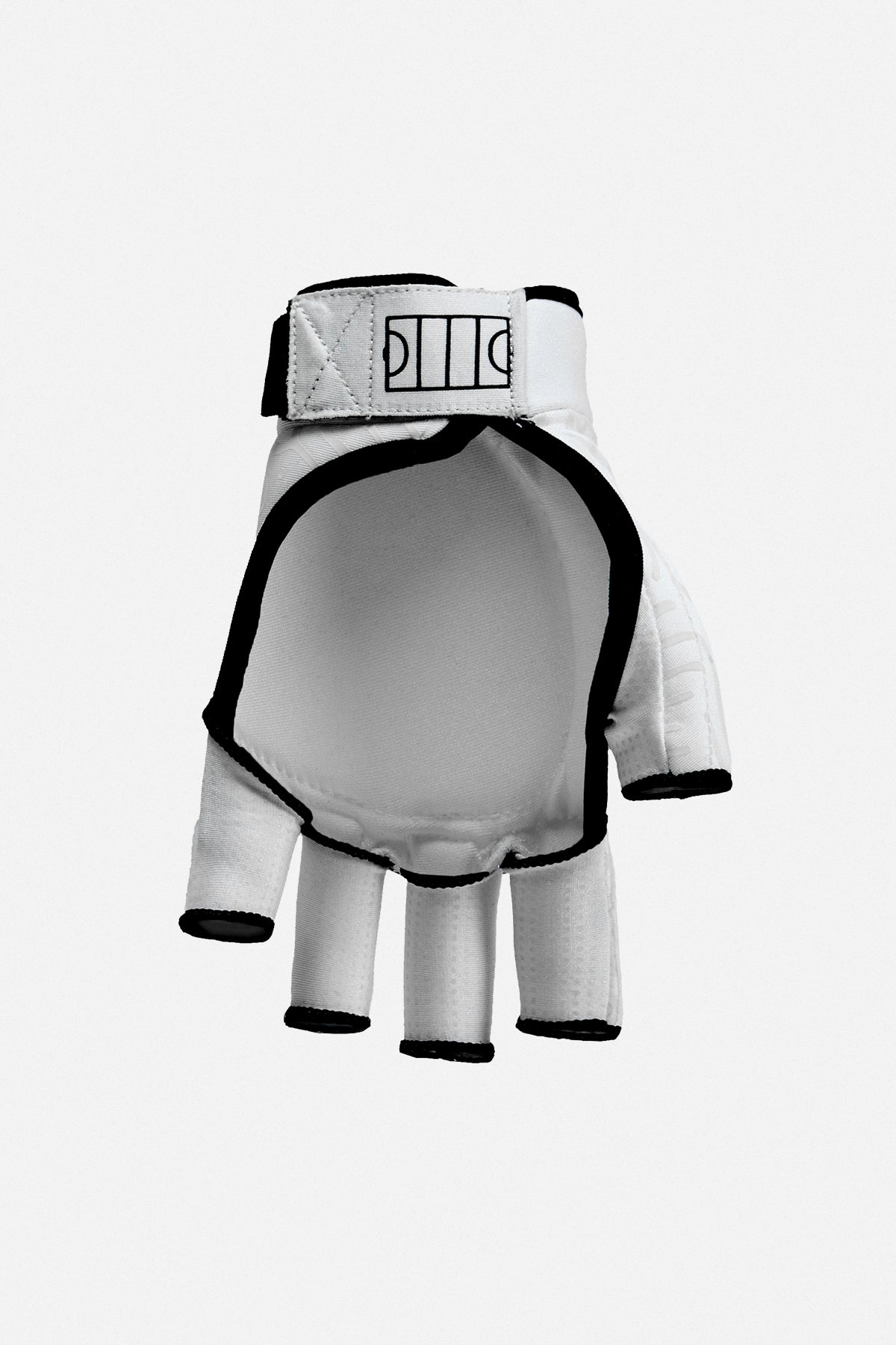 3/4 finger length. One-piece flexible finger protection. TPU knuckle armor. Open palm. Rubberized grip. Reinforced stitching. Velcro strap closure.